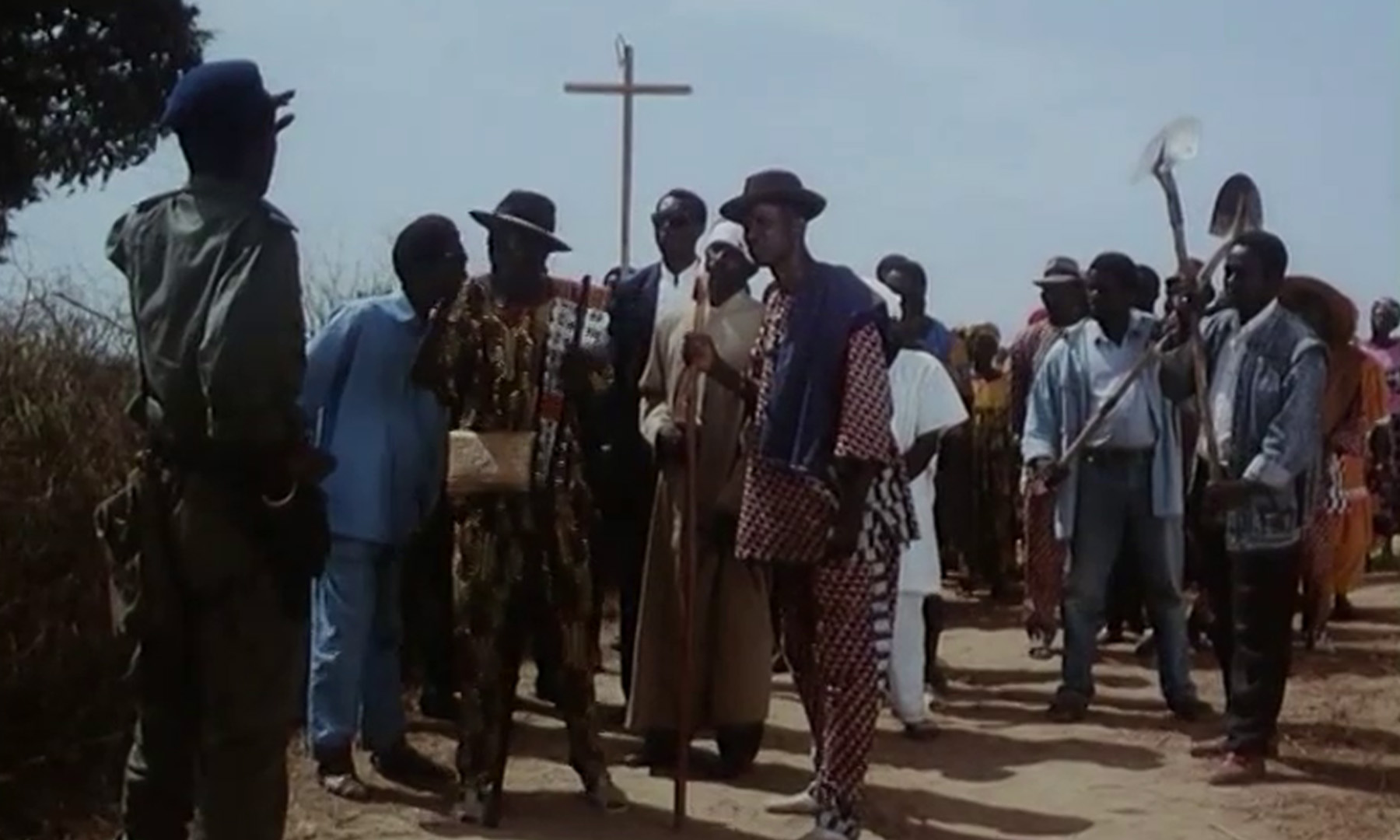 Guelwaar, catholique et grand défenseur de l'auto-détermination de l'Afrique a été éliminé parce que ses paroles dérangeaient. On s'aperçoit le matin de ses obsèques que son corps a disparu et l'éloge funèbre se fait autour d'un cercueil vide. À la suite d'une erreur administrative, c'est une puissante famille musulmane qui l'a enterré et qui ne veut rien révéler pour ne pas perdre la face. Les deux communautés religieuses vont se dresser face à face en évoquant le souvenir de ce curieux personnage qui faisait trembler les autorités en fustigeant les aides internationales reçues par l'Afrique.